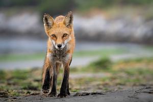 'Sandy Stroll' Red fox approaching on the seaside shore. 100% of the proceeds of this print will go to Project Coyote.