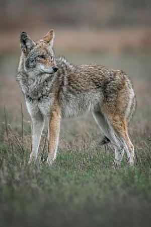 'Turning Point' Large coyote turning to look back on an overcast day. 100% of the proceeds of this print will go to Project Coyote.