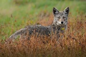 'Hidden Youth' Young coyote peeking from above a bush. 100% of the proceeds of this print will go to Project Coyote.